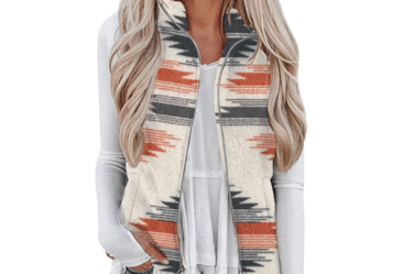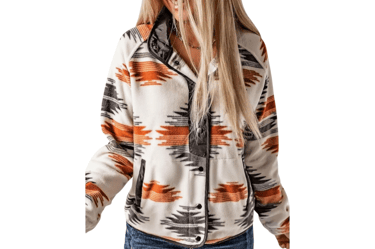 Aztec patterns are iconic in southwestern fashion, and this fleece jacket adds warmth while making a statement.